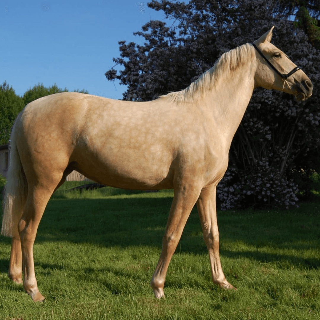 Nous vous présentons Dorada, née en 2023, une jument PRE d’une rare beauté, avec une robe palomino dorée qui capte tous les regards. Avec son modèle harmonieux et son chic naturel, elle incarne l’alliance parfaite entre élégance et prestance.